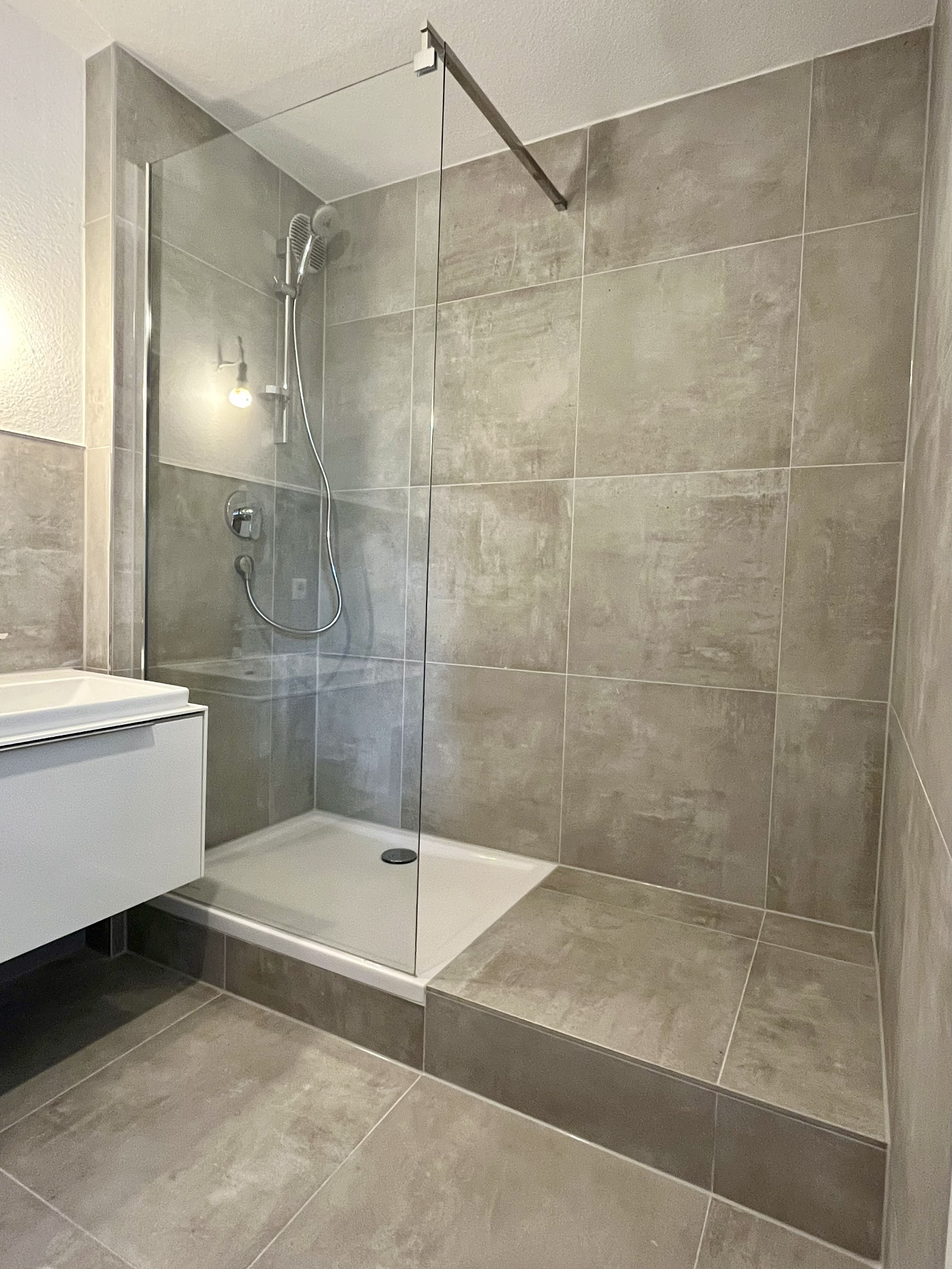 Das Badezimmer sowie die separate Toilette wurden hochwertig saniert. Es wurde mit einer großen, begehbaren Dusche sowie einem voll ausgestatteten Waschtisch von der Marke Villeroy & Boch ausgestattet. Außerdem verfügt das Bad über einen Waschmaschinenanschluss.