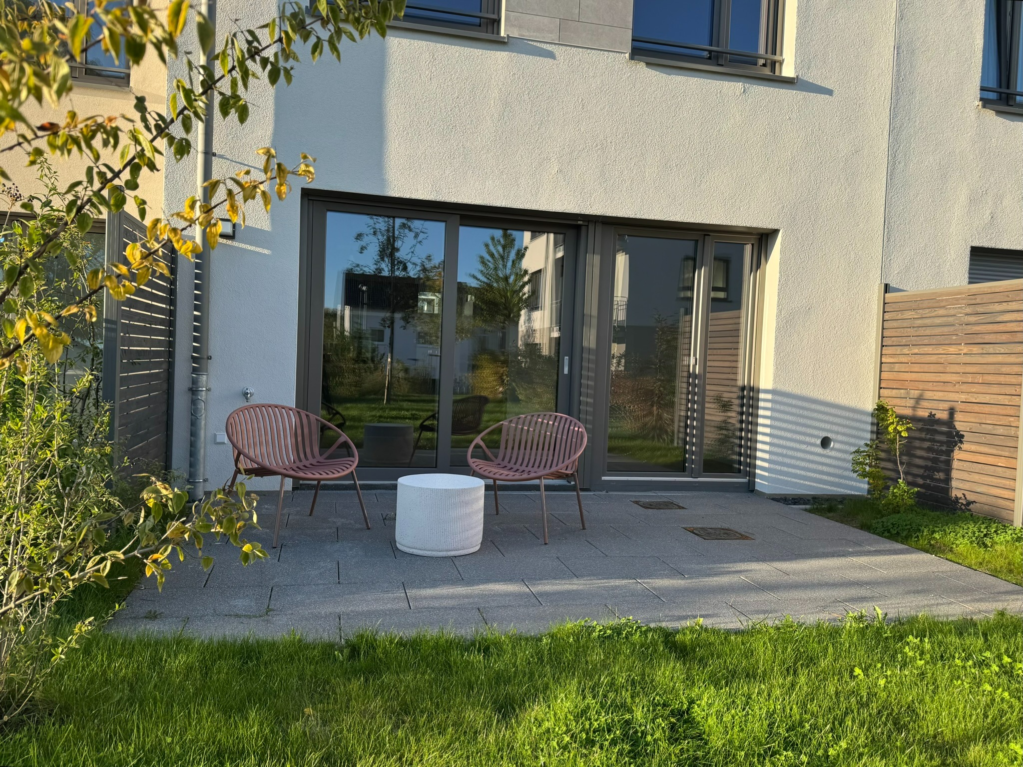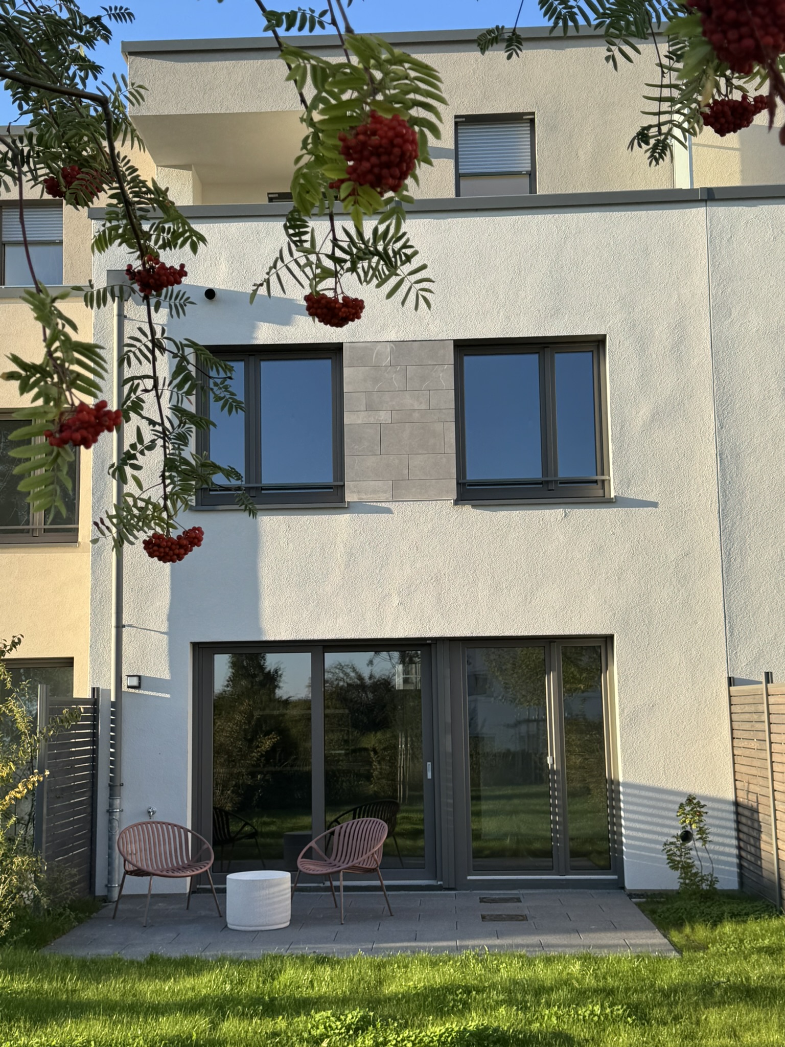 Die EG Ebene mit großer Terrasse und Garten, Wohnen Essen und Küche mit der stylischen Einbauküche mit allen Geräten stellt den Mittelpunkt bzw. das Herzstück dieses Familienhauses dar.