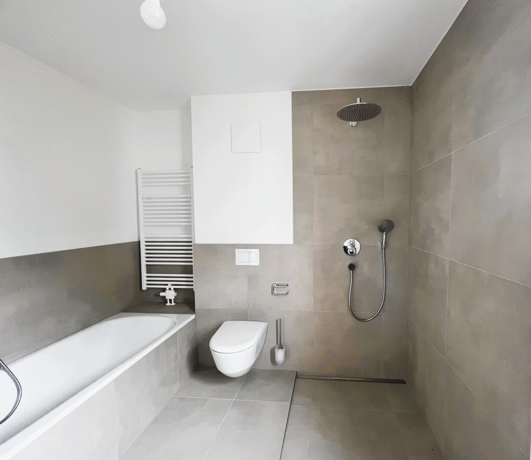 – Die Bäder sind mit edlen 60×60 Fiesen und Bodendusche und wann ausgestattet