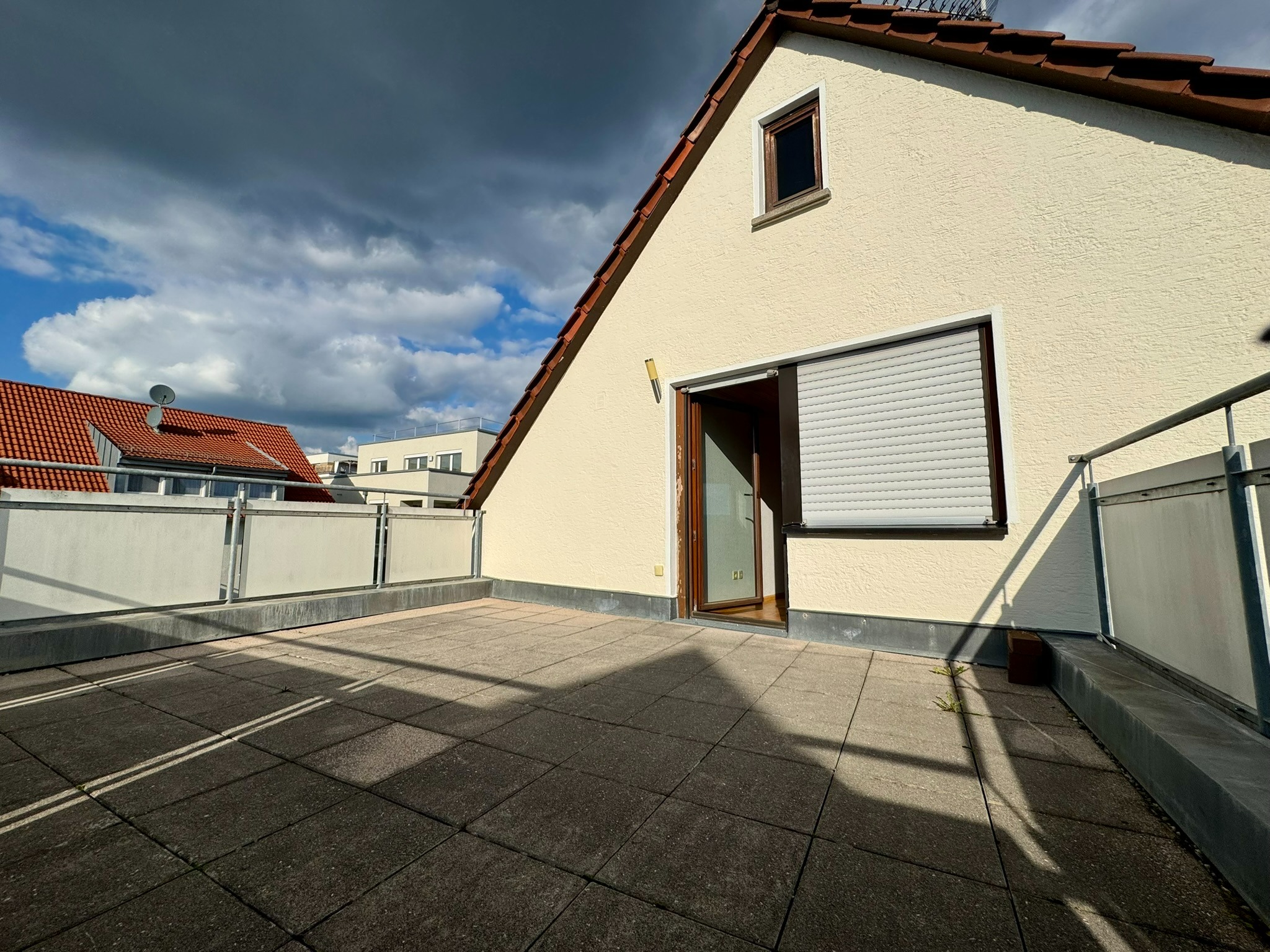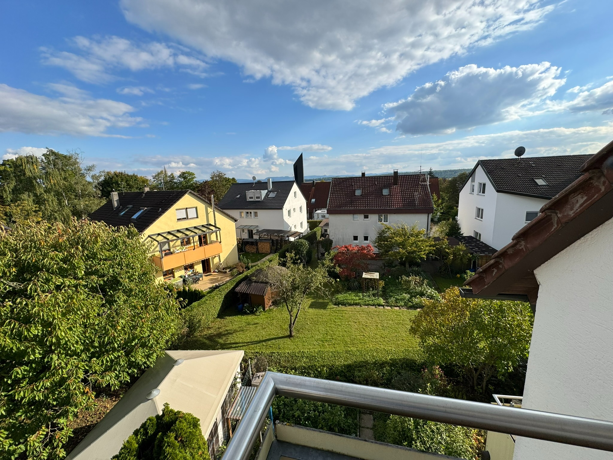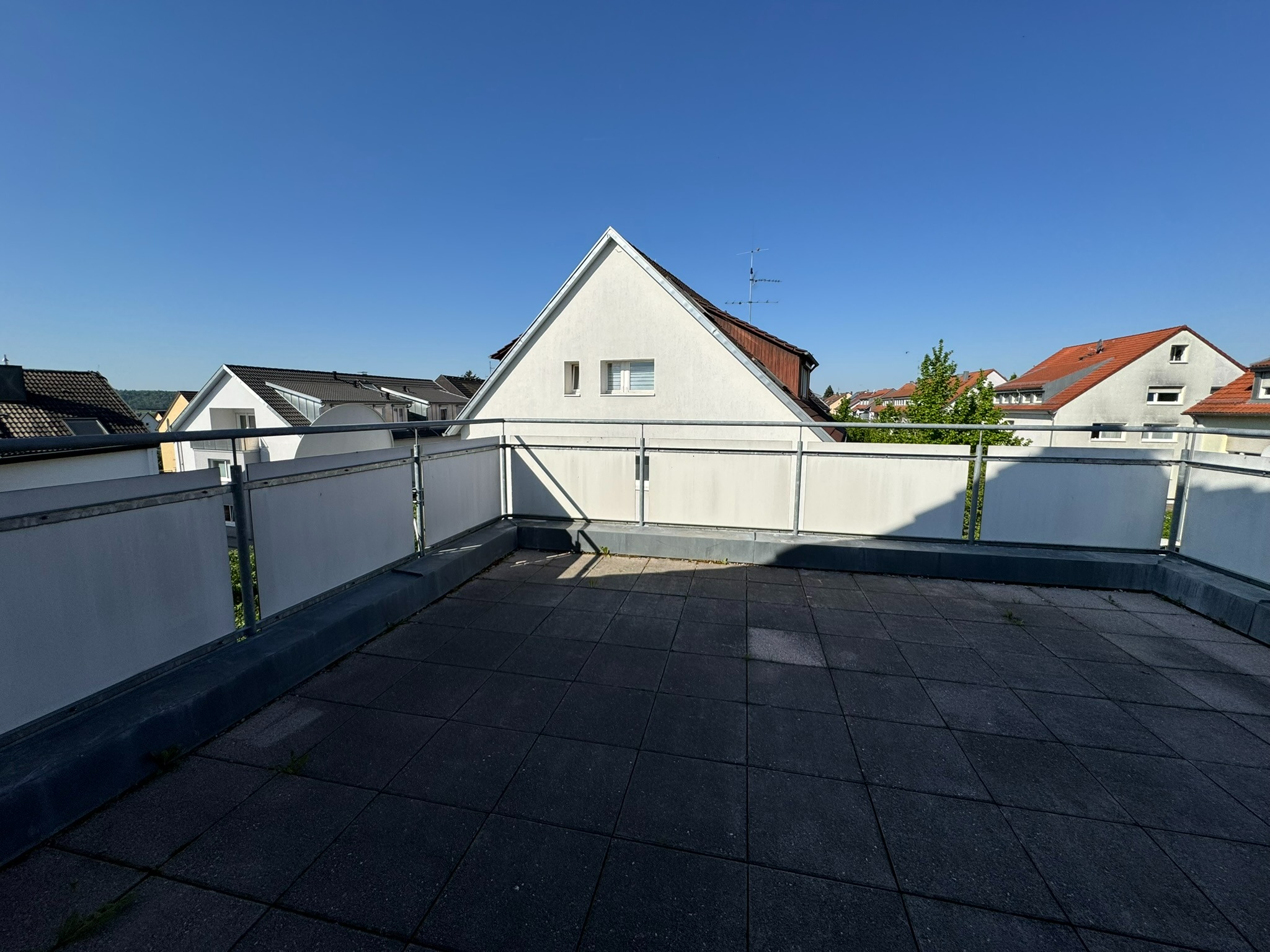 Die oberste Wohnung verfügt über eine beeindruckende Dachterrasse mit Blick auf die Schwäbische Alb. Hier können Sie Ihre Abende bei Sonnenuntergang und herrlichem Ausblick genießen.