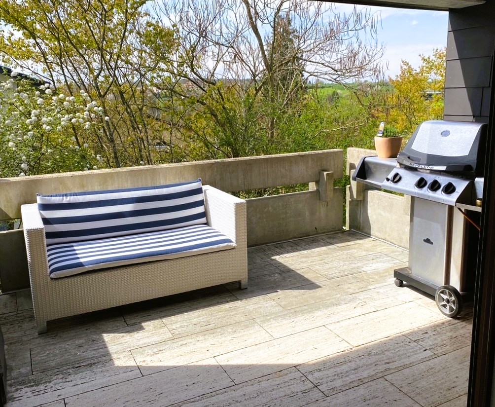 Vom Essbereich mit offener Küche gelangen Sie auf einen großzügigen Balkon mit schönem Ausblick.