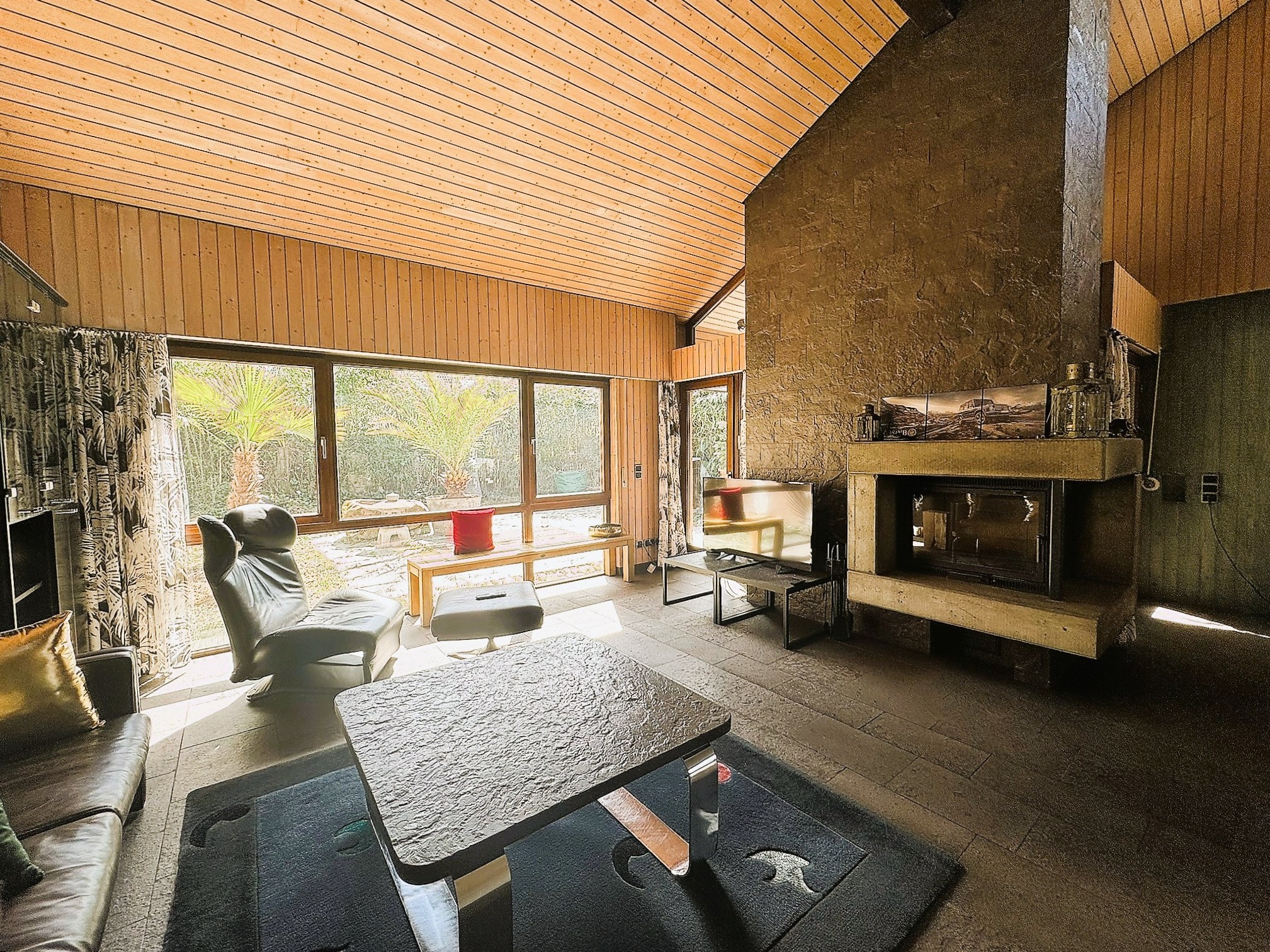 Ein edler Schieferboden aus Holzmaden unterstreicht die Handschrift dieser gelungenen Architektur.
