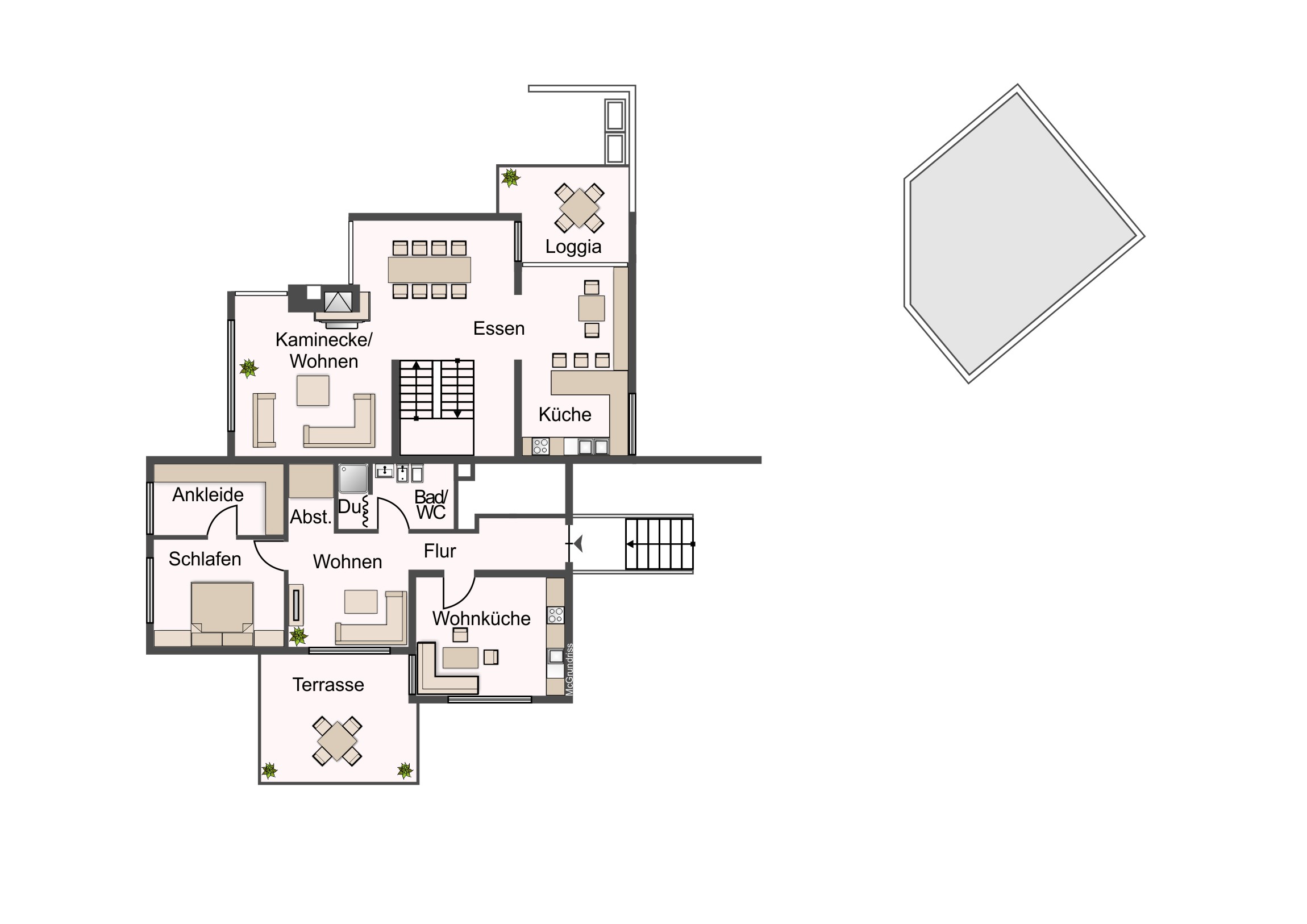Eine weitere kleine Wohnung ließe sich im Eingangsbereich zusätzlich generieren.