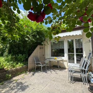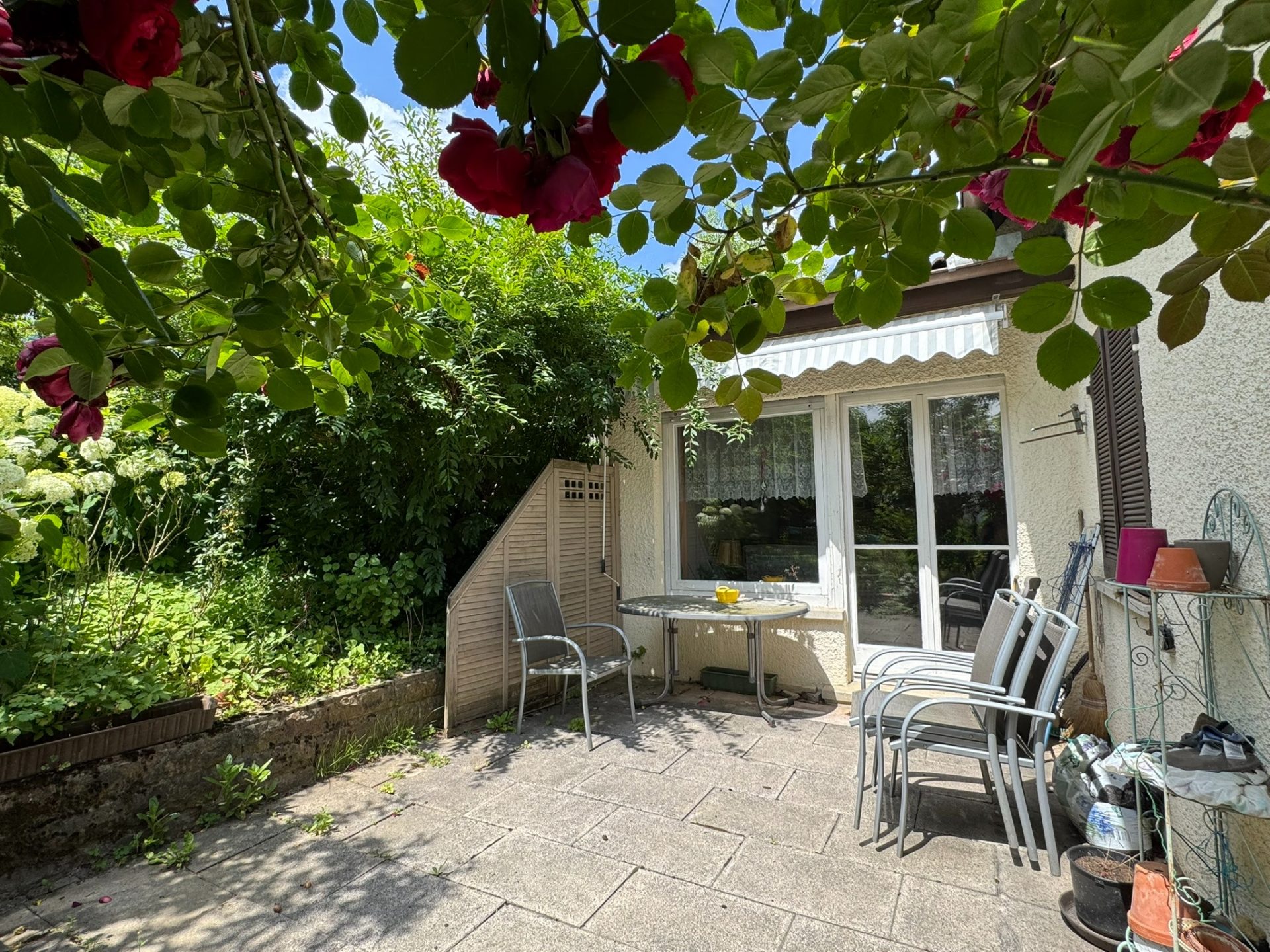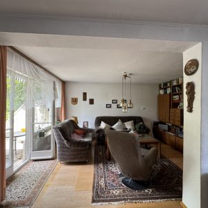 Der Anbau im EG beherbergt ein geräumiges Wohnzimmer mit direktem Ausgang zur Terrasse mit viel Tageslicht. Hier können Sie gemütlich und geborgen sitzen.