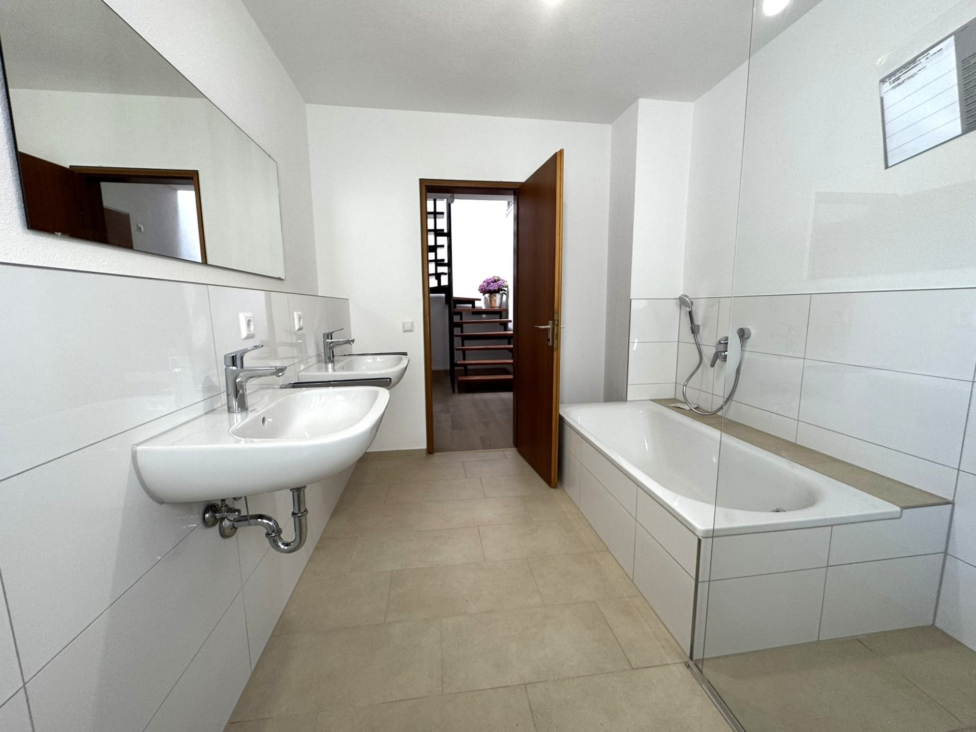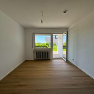 Die untere Ebene beherbergt zwei schöne Zimmer mit direktem, ebenerdigem Zugang zum Garten. Des weiteren befindet sich hier noch ein separates Ankleidezimmer sowie ein großes, helles Tageslichtbad mit Badewanne und Dusche.