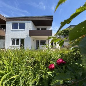 Ein moderner und schicker, sehr gut durchdachter Grundriss erwartet Sie in dem zweistöckigen Haus. Auf der lichtdurchfluteten Eingangsebene befindet sich das Entree, ein Gästebad mit Dusche und WC sowie ein großer, offener Koch- Ess- und Wohnbereich und ein überdachter, großzügiger Balkon. Von der Küche aus geht es direkt über eine kleine Terrasse zum Kräutergarten.